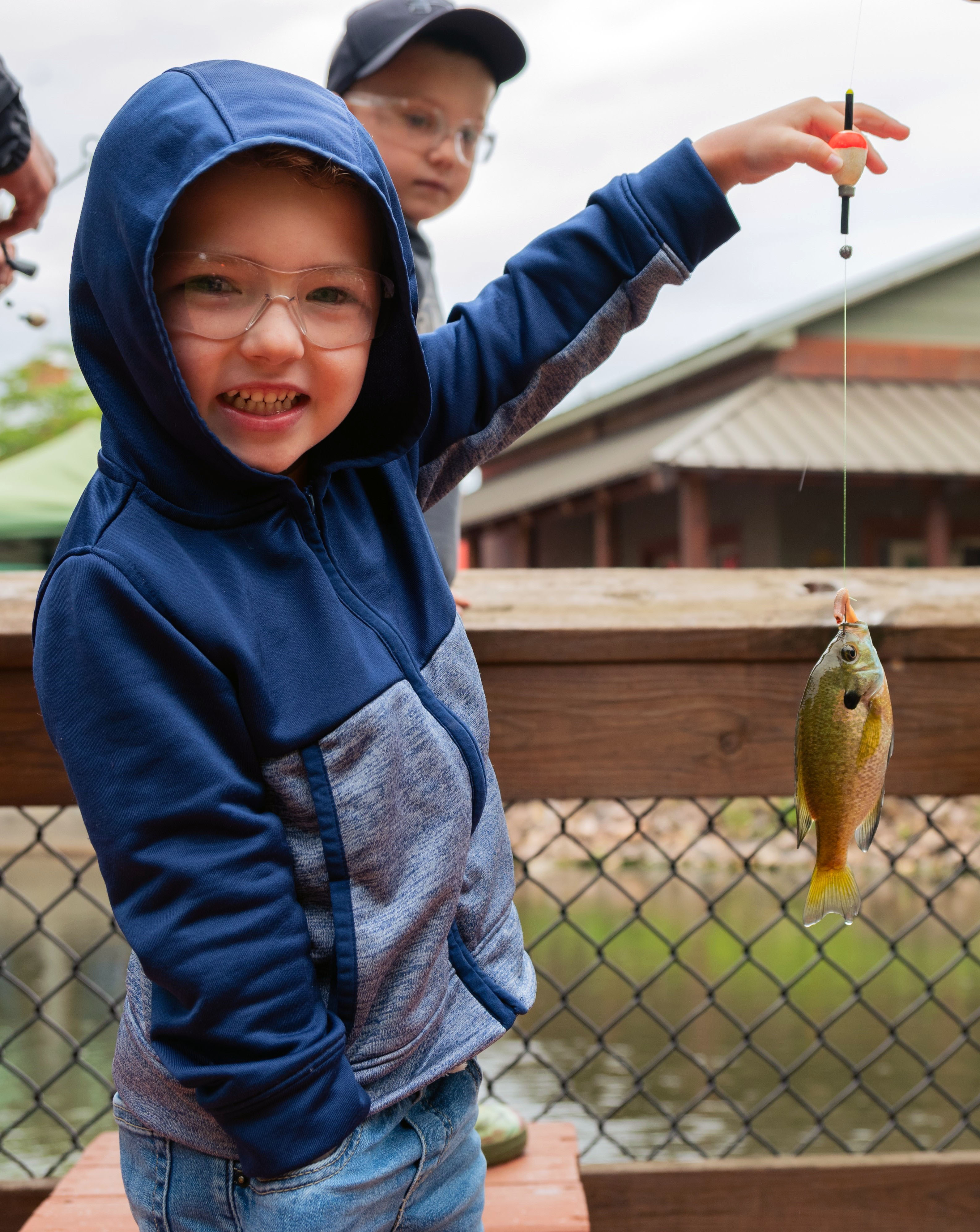 Kid: A successful young fisherman holds up his catch on Kids Fishing Day. (Kids Fishing Day team photo)
