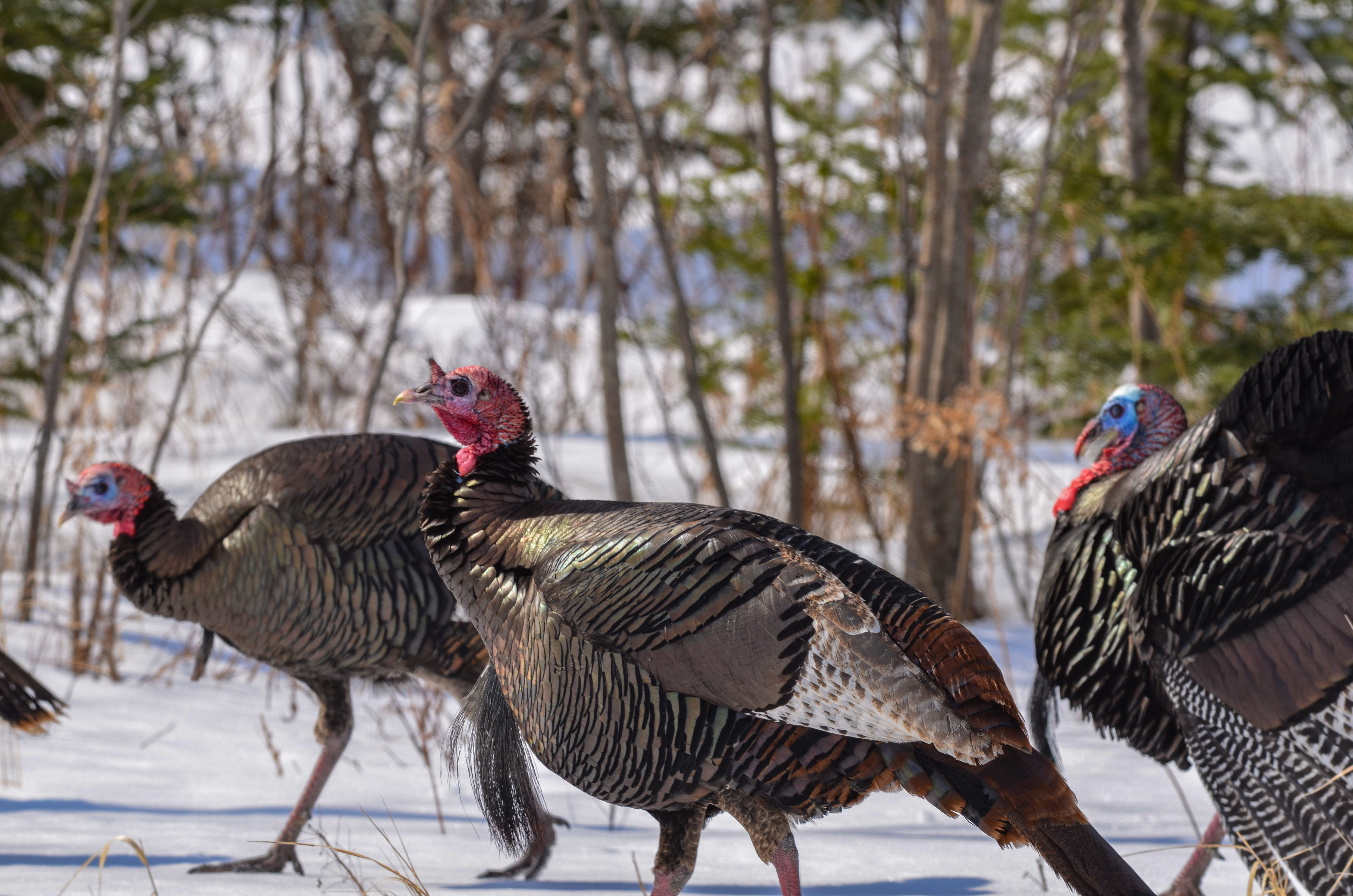- Group of turkeys: Wild turkeys foraging in Mackinac County.
