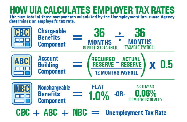 We have prepared a sample unemployment insurance tax rate calculation. The sample shows how each of the three components that determines an employer's tax rate is calculated.