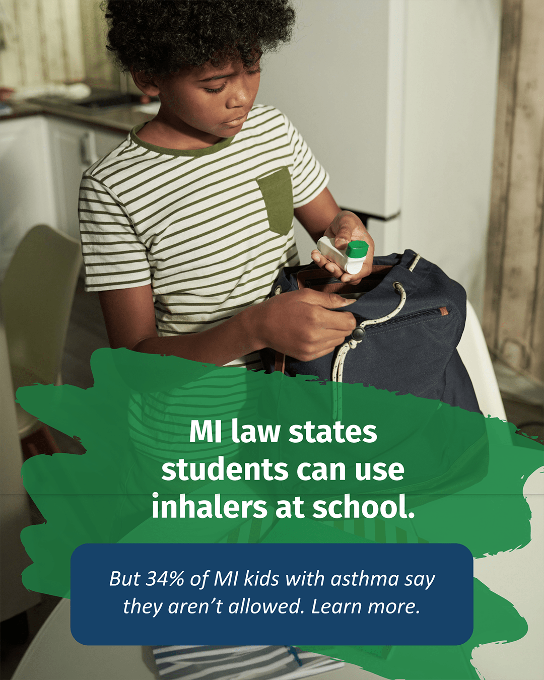 MI law states students can carry/use asthma inhalers on school grounds, but 34% of MI kids with asthma say they aren’t allowed. Learn more@ http://bit.ly/2w48gaG