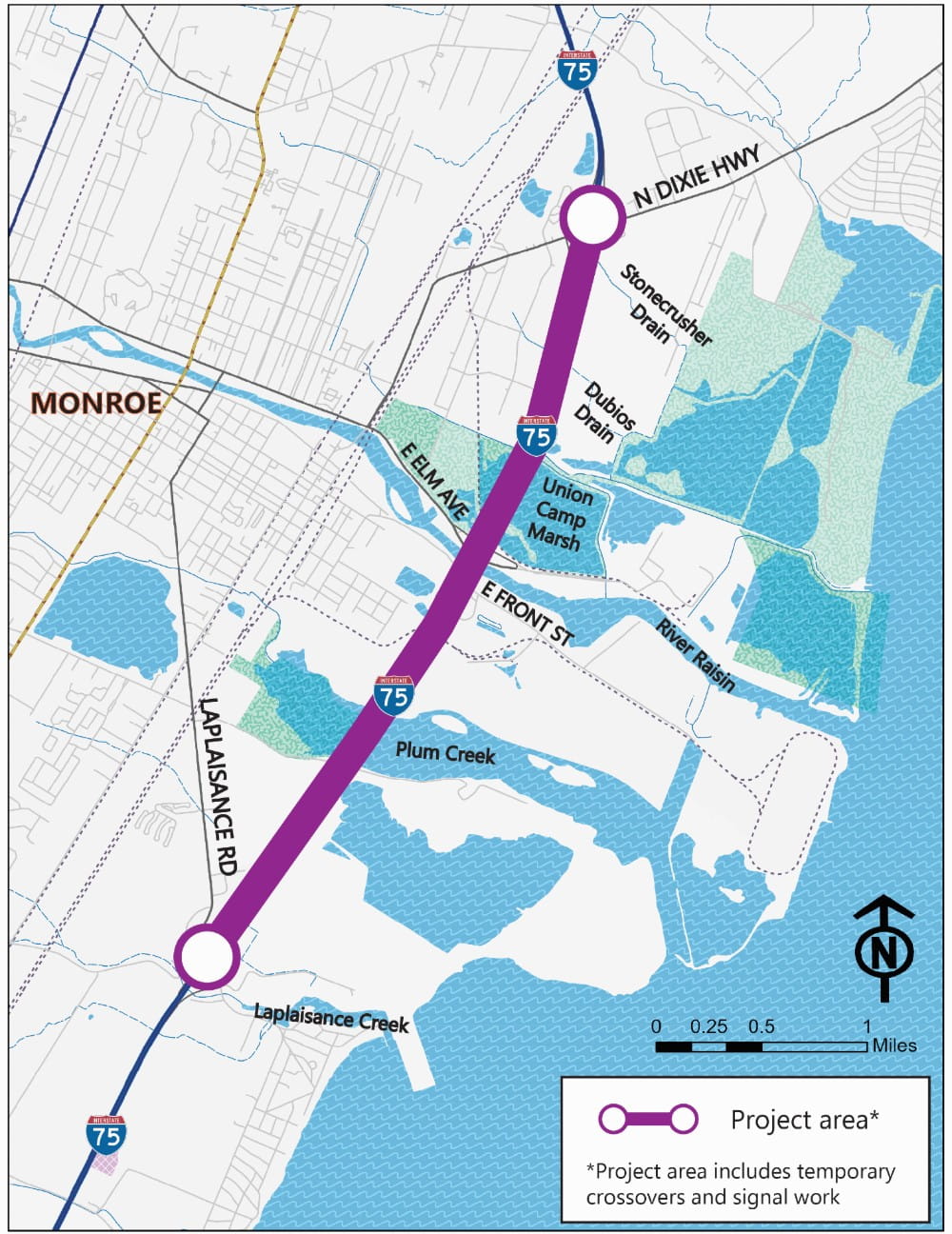 MDOT is rebuilding I-75 from Laplaisance Road to N Dixie Highway in the city of Monroe, Frenchtown Charter Township and Monroe Charter Township in Monroe County. The proposed project will address operational and safety needs.