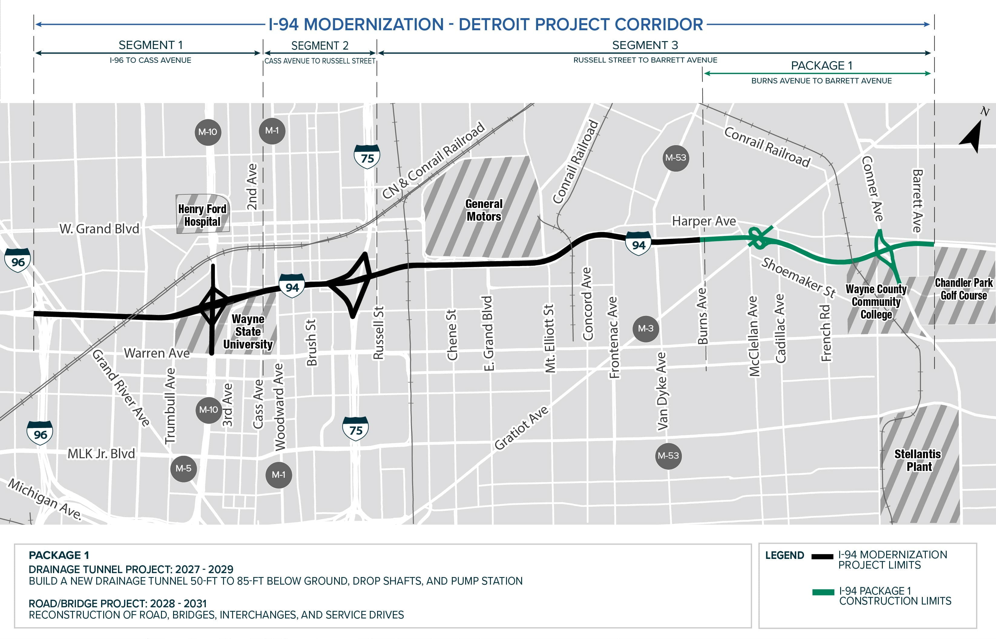The I-94 modernization project will rebuild 7 miles of interstate in segments from just east of Conner Avenue to just east of the I-96 interchange in Detroit.