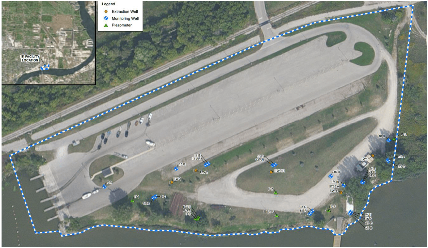Dow Chemical ITI (International Terminals Inc), was a chemical storage facility/terminal on the Saginaw River located on Martin Street, East of H. S. Truman Parkway and was leased by Dow. It was not a manufacturing facility; it stored chemicals. EGLE staff have been working with the liable party at the site for many years. It has a groundwater collection system to deal with volatile organic compounds already known to be present on site. Dow Chemical sampled for PFAS compounds based on historic storage of firefighting foam at the site.