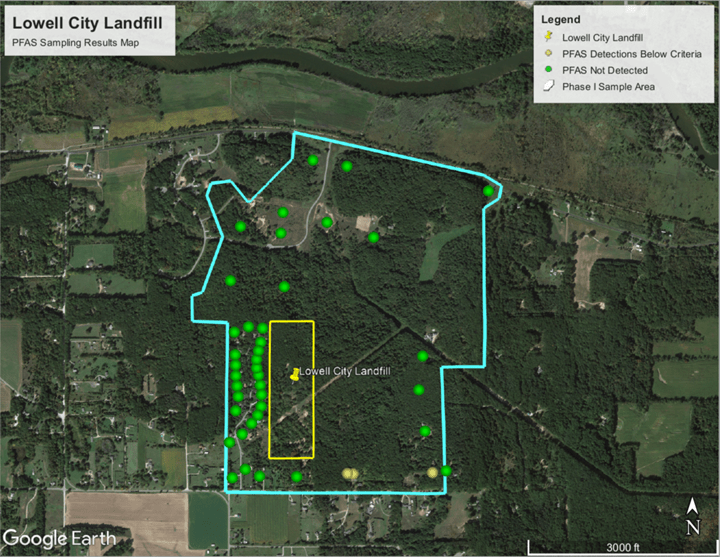 The City of Lowell will work with EGLE to investigate and define the extent of the PFAS impacts in the groundwater at the Lowell City Landfill site through the installation of additional monitoring wells and groundwater sampling.