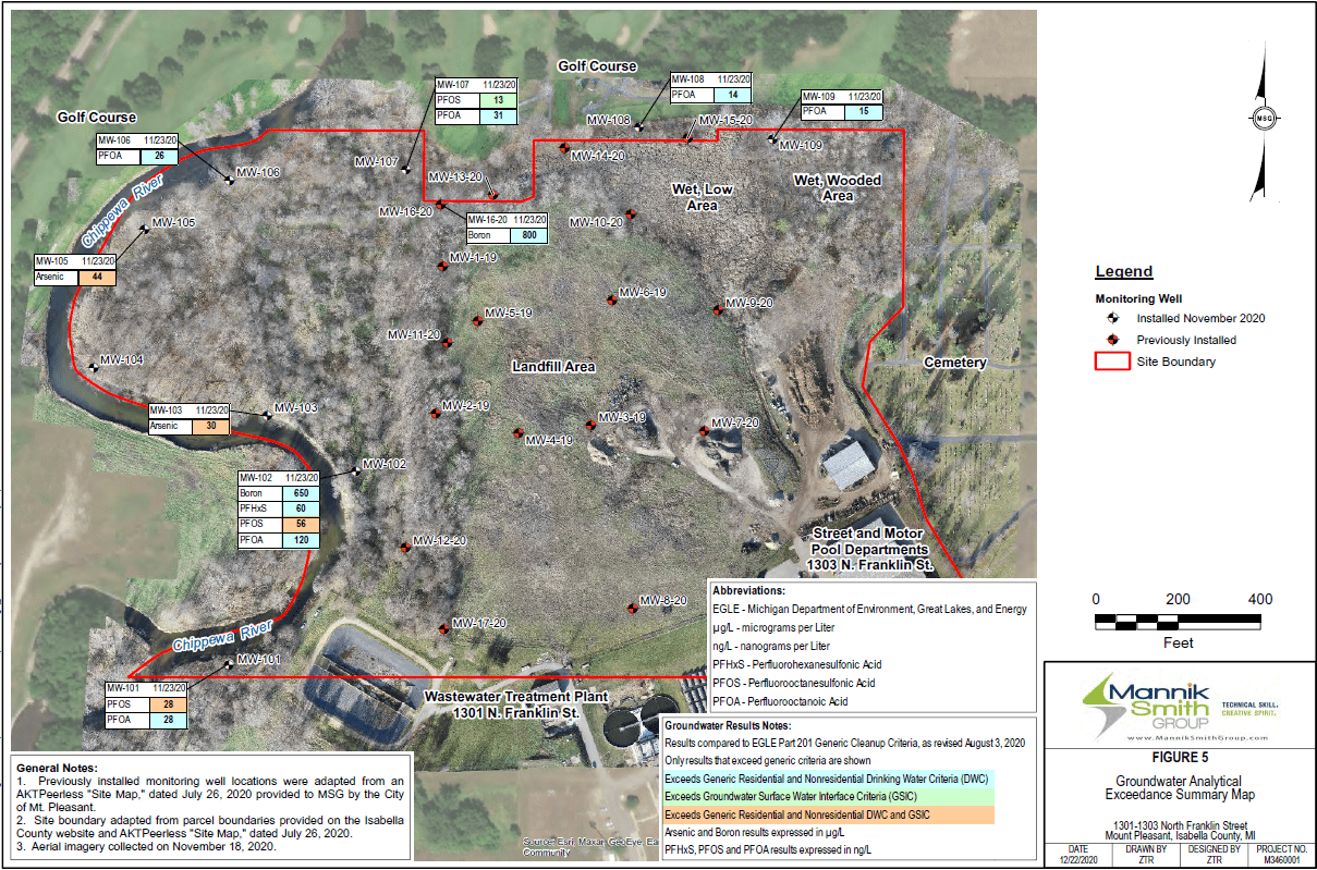 - On December 15, 2020, the City of Mt. Pleasant informed EGLE that Mannik Smith Group installed 9 monitoring wells.