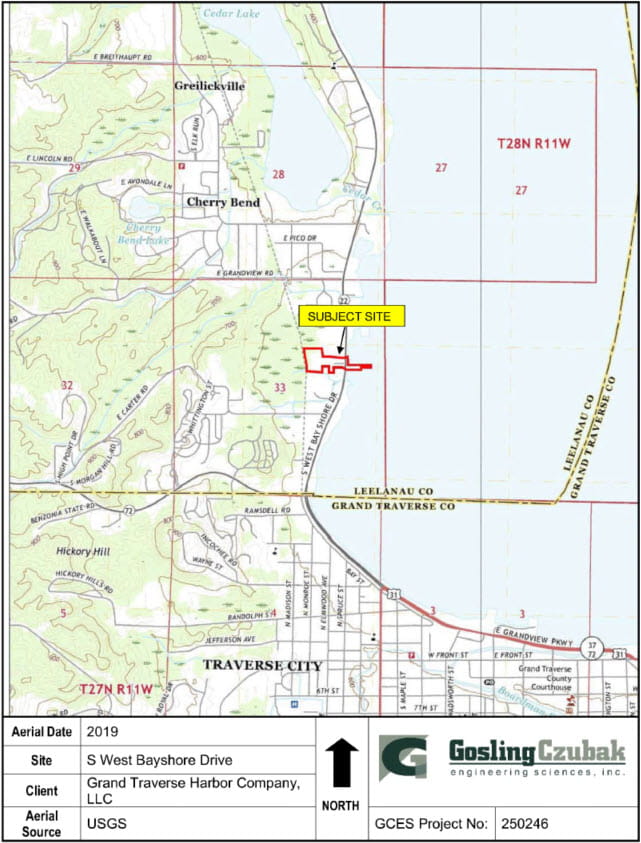 13390 S W Bay Shore Drive was formerly the site of Zephyr, a bulk petroleum receiving, storage and dispensing facility. Three groundwater monitoring wells were sampled for PFAS, one of which had 24.1 ppt PFOA (compared to 8 ppt). Data was sent to EGLE as part of a baseline environmental assessment, which allows a potential purchaser to buy property without being liable for existing contamination.