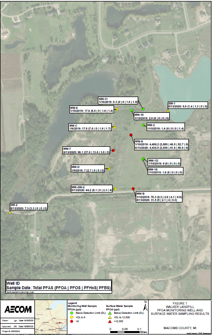- On January 9-10, 2020, Environment, Great Lakes, and Energy’s (EGLE) contractor AECOM sampled ten monitoring wells on and surrounding the landfill.