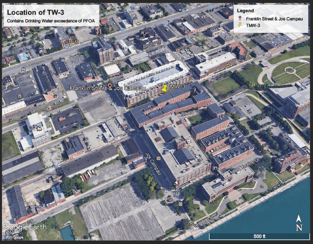 Stroh Parking Structure, located at 2935 Wright Street and 261 McDougall Street, was a former foundry/plating facility from approximately 1922 through 1953. EGLE reviewed a Baseline Environmental Assessment (BEA) that was conducted in April 2021 due to a potential property ownership transfer. The BEA included two temporary well groundwater samples, one of which exceeded groundwater clean-up criteria with a result of 13 ppt PFOA and 51 ppt PFOS. EGLE will continue to evaluate this site in light of other investigations in the immediate vicinity.