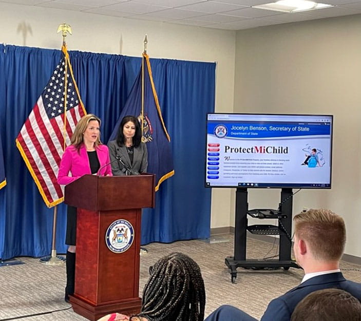 LANSING, Mich. – Secretary of State Jocelyn Benson and Attorney General Dana Nessel today encouraged Michigan parents and schools to sign up for the state’s ProtectMiChild Registry in honor of National Child Abuse Prevention Month.